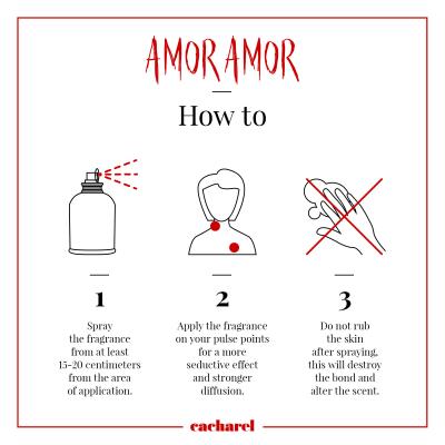 Očarajte sve oko sebe eliksirom ljubavi skrivenim pod imenom Cacharel Amor Amor . Naziv mirisa i dizajn boce u strasnoj crvenoj boji ukazuju na to da je to prava suština senzualnosti i ljubavi.