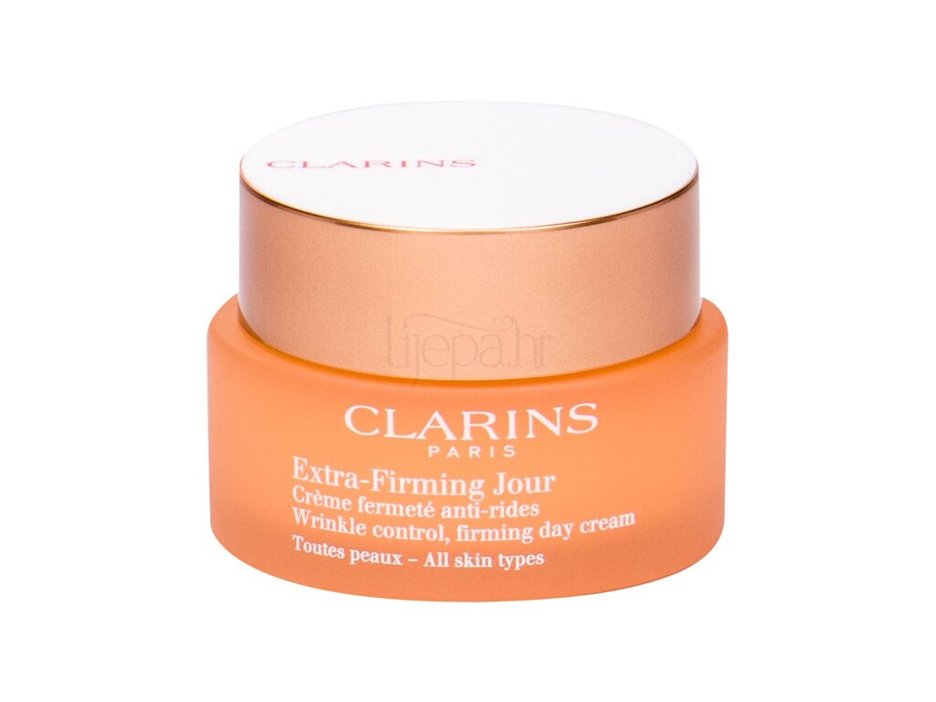 Clarins Extra Firming dnevna krema za lice, koja povećava sposobnost odbrane kože, doprinosi dinamici i regeneraciji stanica i pomaže koži da ostane duže mlađa. Izravnava tanke linije i bore i ojačava konture lica. Pogodno za sve tipove kože.