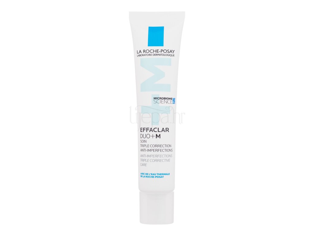 La Roche-Posay Effaclar Duo+ M krema trostruka je korektivna njega protiv nepravilnosti za masnu kožu sklonu aknama, temeljena na znanosti o mikrobiomu.