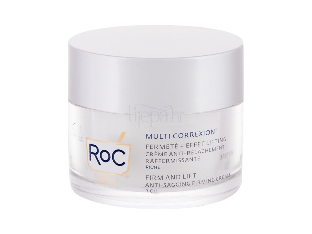 RoC Multi Correxion Firm And Lift Anti-Sagging Firming Cream Rich ima bogatu njegujuću teksturu koja brzo prodire u kožu. Poboljšava čvrstoću, pomaže u preoblikovanju kontura lica i sprječava opuštenost kože.