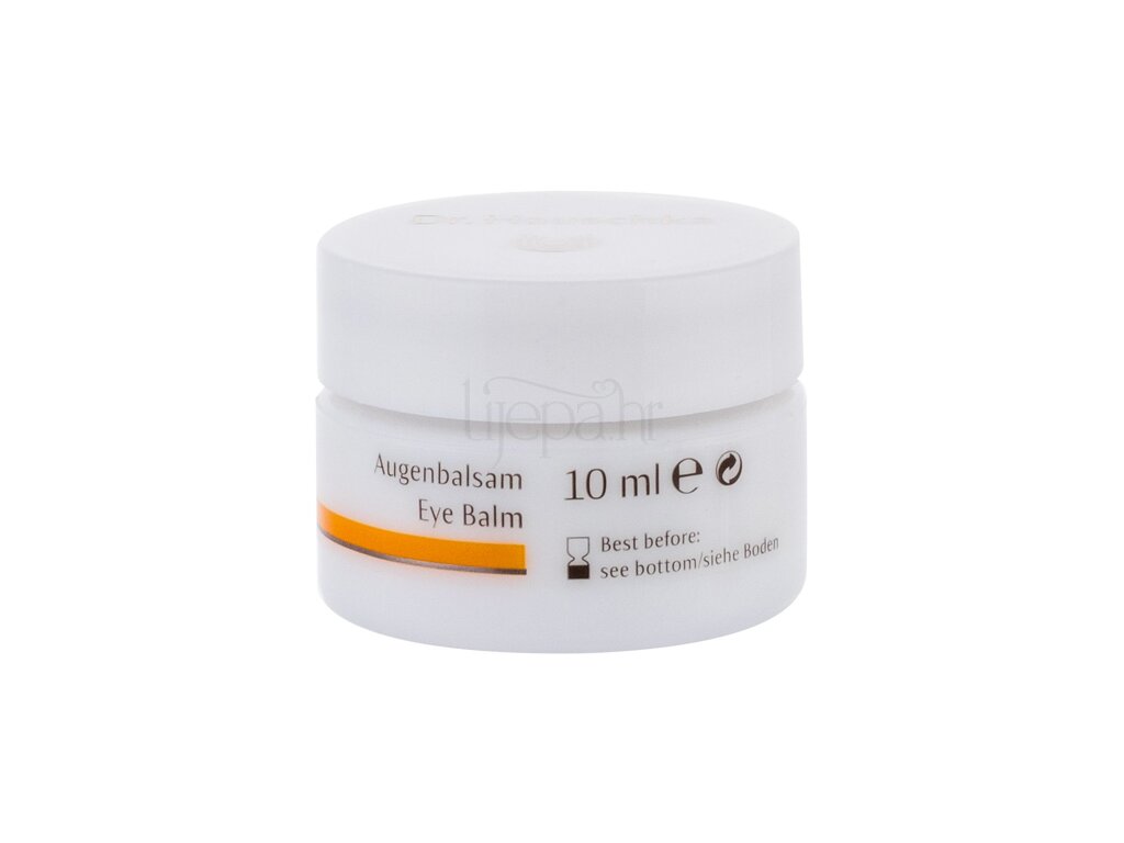 Balzam za predjeo oko očiju Dr. Hauschka Eye Balm nježno štiti područje oko očiju. Pravi je zaštitni tretman intenzivnog učinka, pogodan za sve tipove kože. Nježna koža područja oko očiju postaje znatno glađa. Mrkva, ranjak, indijski melij (neem), pčelinji vosak, kakao maslac, čestice svile i ulje sjemenki marelice ojačavaju osjetljivo područje oko očiju, zaglađuju ga i štite od vanjskih utjecaja.