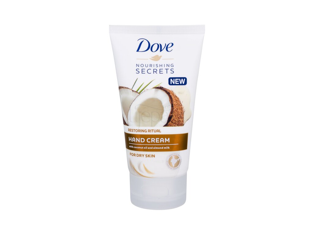 Krema za ruke Dove Nourishing Secrets Restoring Ritual učinkovito hidrira suhu kožu ruku. Sastav, obogaćen kokosovim uljem i bademovim mlijekom, vraća izgubljenu hidrataciju na koži. Krema se brzo upija i ne ostavlja masni film na koži. Uz hranjiv tajni obnavljajući ritual, vaše će ruke biti hidratizirane, mekane i mirisne.