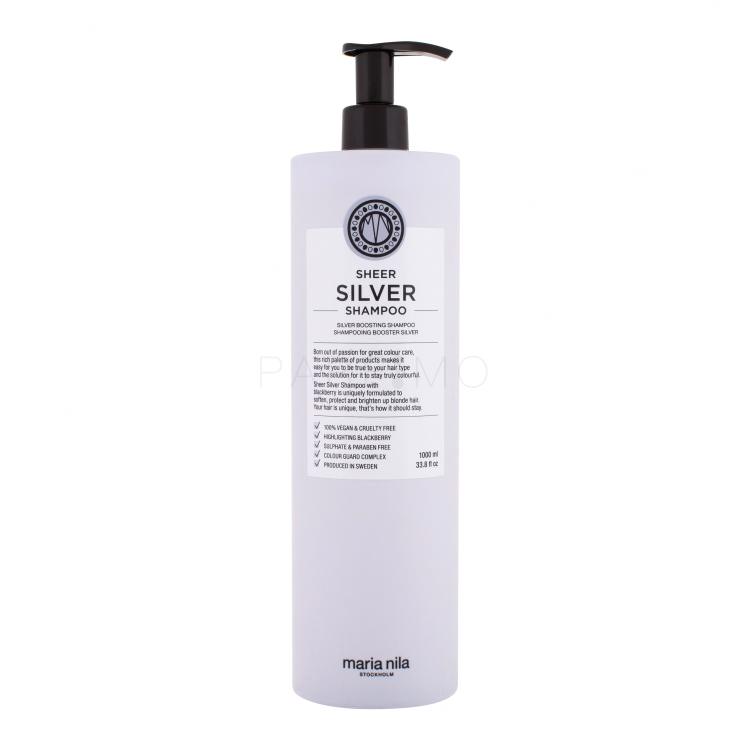 Maria Nila Sheer Silver je šampon s ljubičastim pigmentom i ekstraktom kupine, koji neutralizira zlatne nijanse u plavoj kosi, a vašoj kosi dodaje sjaj i snagu.