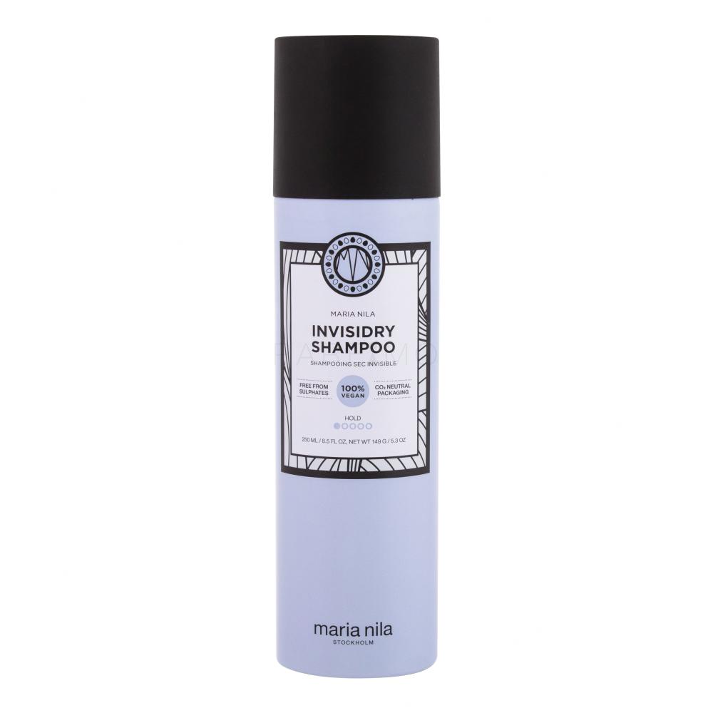 Maria Nila Invisidry Shampoo ugodno je lagan i suh šampon, koji stvara prirodan izgled, ne ostavlja bijele tragove i zato je savršen za tamnu kosu.
