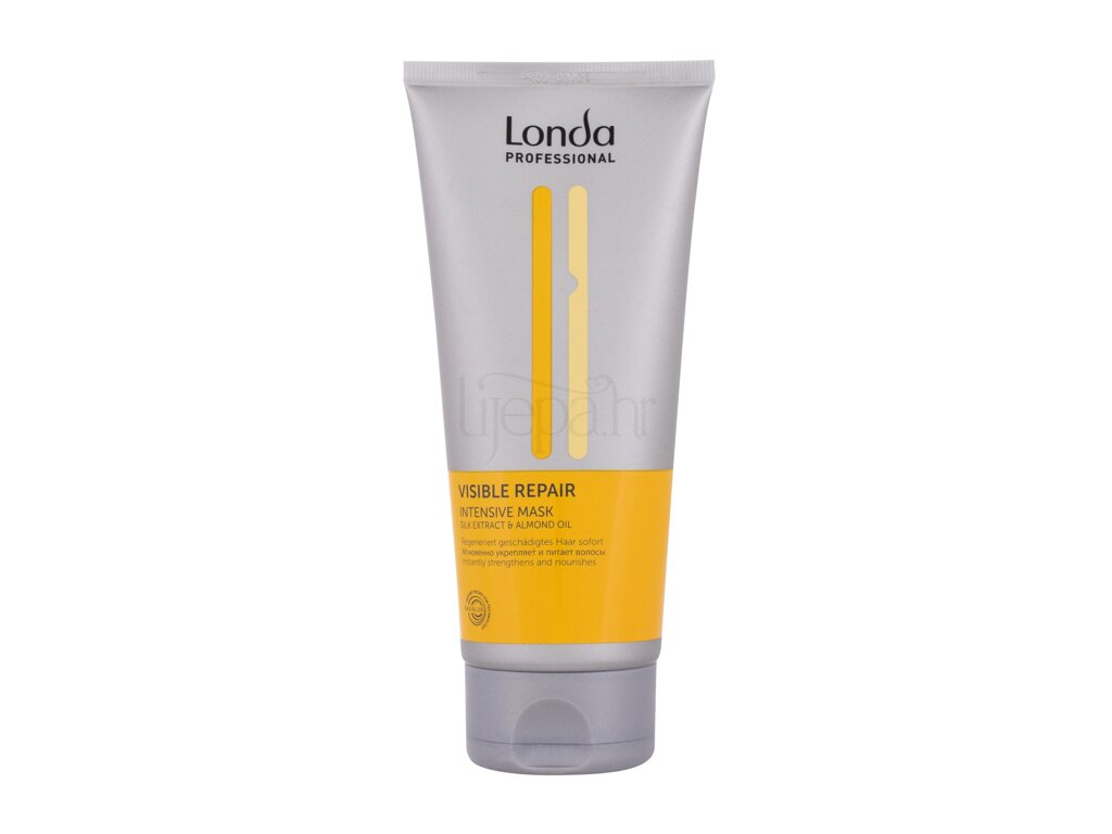Londa Visible Repair Intensive Mask maska koja pruža jaku, podatnu i sjajnu kosu. Obogaćena pantenolom, ekstraktom svile i bademovim uljem, obnavlja oštećenu kosu od korijena do vrhova. Prodire u dublje slojeve kose, hrani ih i nudi intenzivnu njegu. Kosa dobiva zdrav izgled i postaje izuzetno glatka.