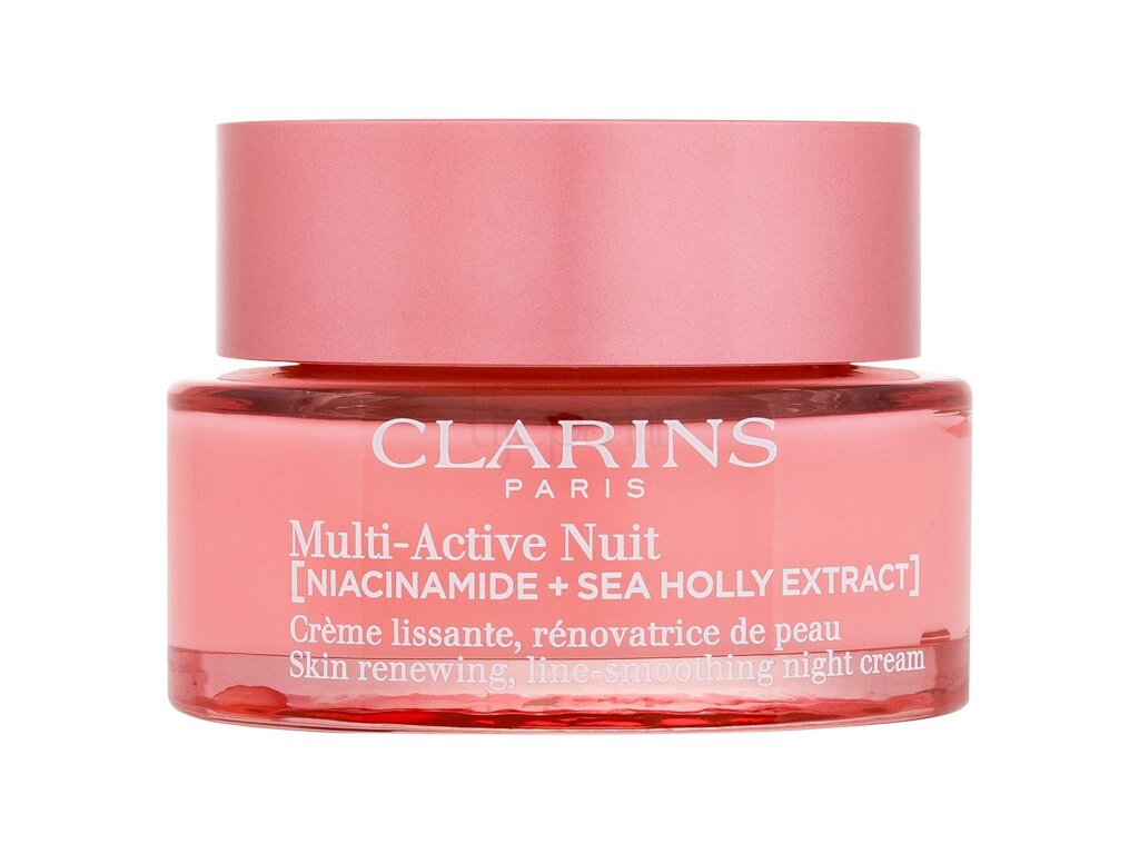 Noćna krema za lice Clarins Multi-Active Smoothing Night Cream All Skin Types je noćna krema koja revitalizira umornu kožu, zaglađuje bore i povećava blistavost s umirujućim mirisom za bolji san.