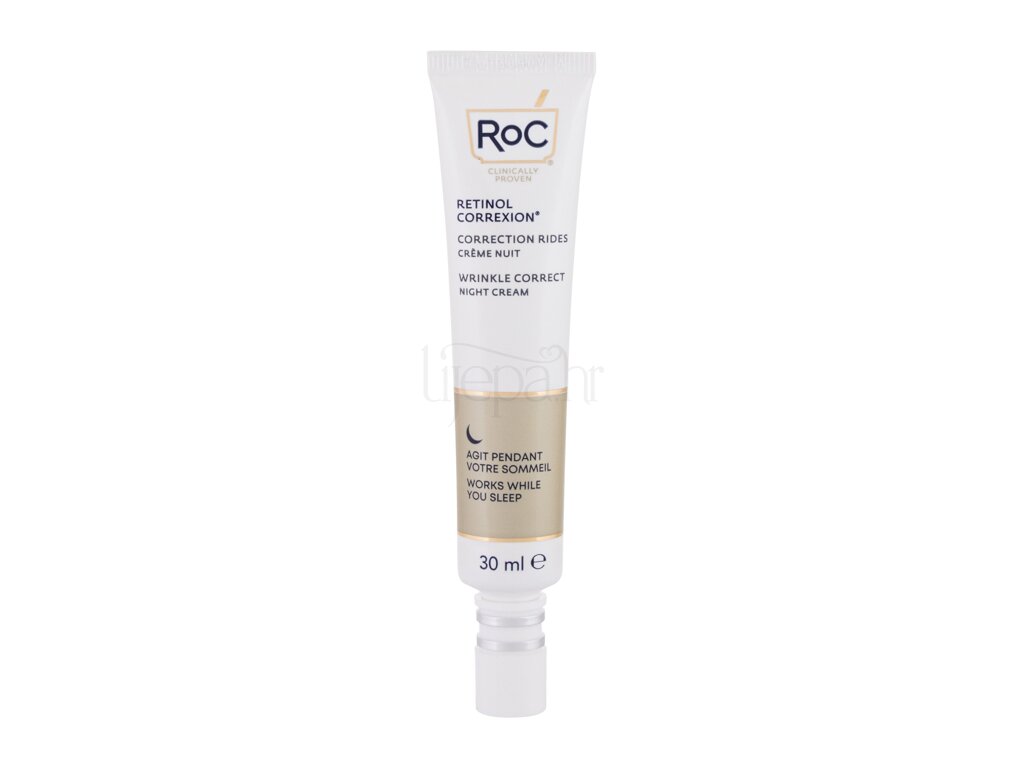 RoC Retinol Correxion Wrinkle Correct Night Cream učinkovito zaglađuje bore i bori se protiv znakova starenja. Preko noći pruža koži potrebnu vlagu i hranjivost kako bi se probudila svježeg, veselog i mladolikog izgleda jer koža može izgledati i do 10 godina mlađa.