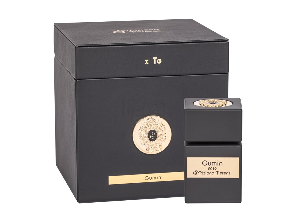 Parfem Tiziana Terenzi Anniversary Collection Gumin temelji se na obiteljskim tradicijama. Parfem govori o blistavoj ljubavi, umirujućoj nježnosti i sretnoj ranoj večeri koja označava novi dan koji obećava. Miris se otvara citrusnim plodovima iz talijanskih voćnjaka obasjanih suncem, čija ljepota naglašava odabrano cvijeće u srcu i dubinu mošusa u bazi. Svaka njegova kap predstavlja eksploziju tekućih osjećaja ... Parfem Gumin cijeni dame i gospodine izvrsnog stila, snažnog karaktera i izvanredne osjetljivosti.