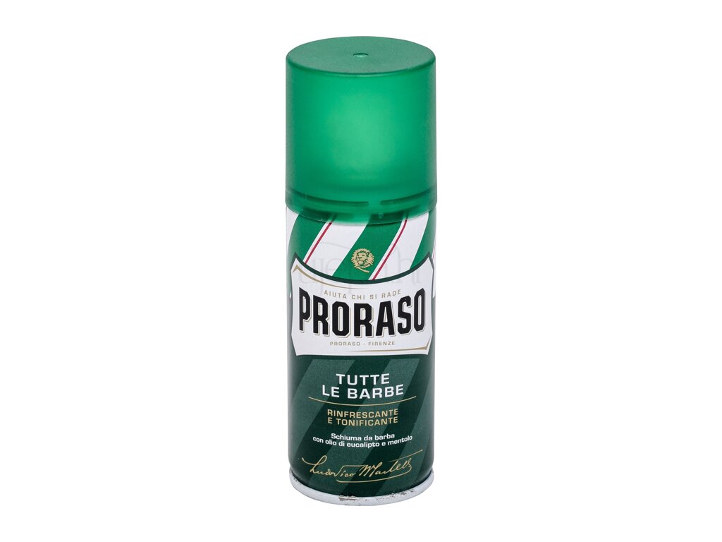 Pjena za brijanje PRORASO Green Shaving Foam nudi kremastu pjenu, koja tonizira, umiruje i štiti kožu. Njena formula koristi ulje eukaliptusa za čišćenje i toniranje, a dodani mentolni spoj osvježava i revitalizira kožu. Dodani su glicerin, koji olakšava klizanje britvice i ulje avokada, koje sprečava crvenilo i peckanje nakon brijanja.