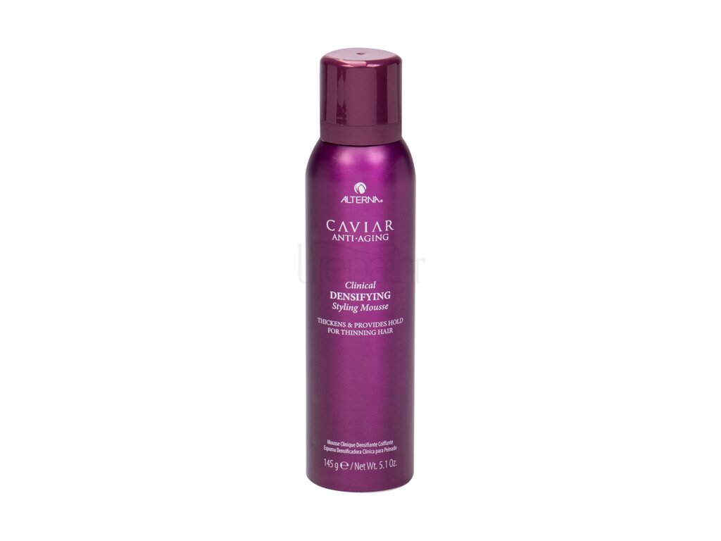 Pjena za volumen tanke kose Alterna Caviar Anti-Aging Clinical Densifying je lagana pjena za zgušnjavanje koja zadebljava i jača kosu istovremeno sprječavajući lomljenje. Formula zadebljanja kose daje punoću i snagu tankoj i lomljivoj kosi bez da ih opterećuje. Usitnjen ekstraktom kavijara s potpisom i crvenom djetelinom se zgusne kako bi dobio izgled punije kose.