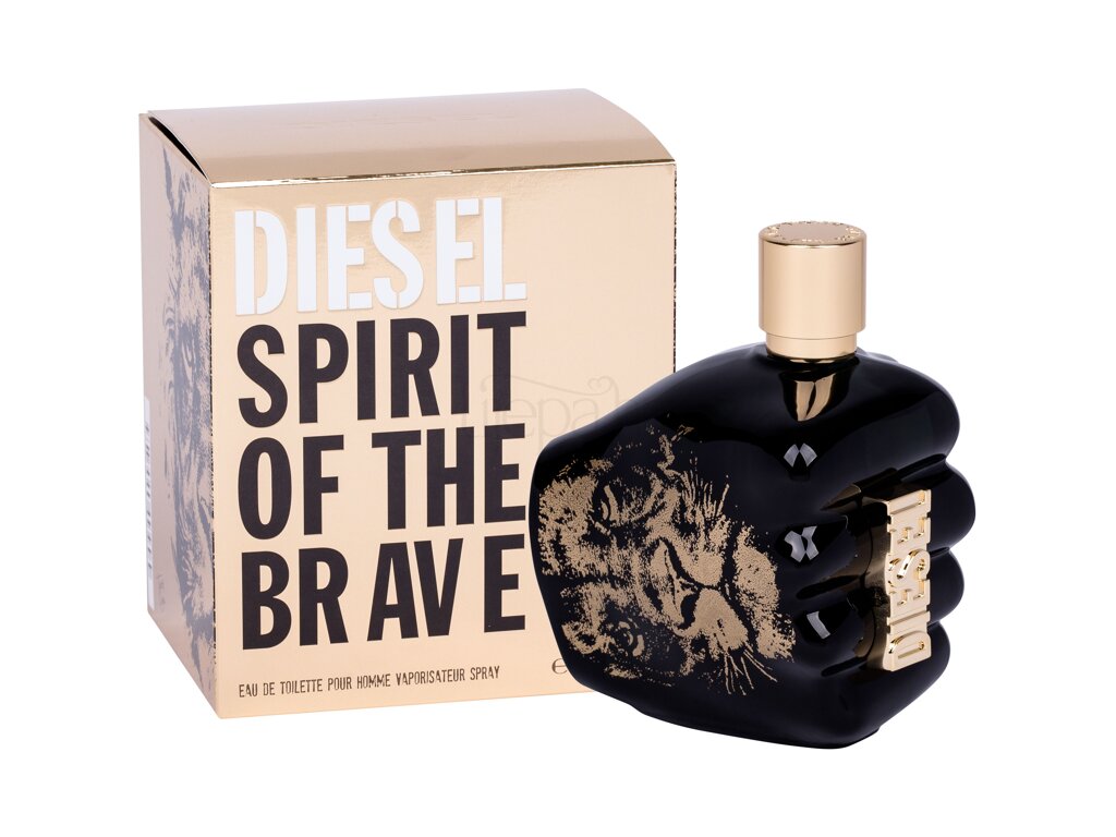 Toaletna voda za muškarce Spirit Of The Brave u poznatom dizajnu stisnute šake ima "cool" crnu boju sa zlatnim dodacima. Talijanski modni brend Diesel predstavio je ovaj orijentalni drveni miris 2019. godine.
