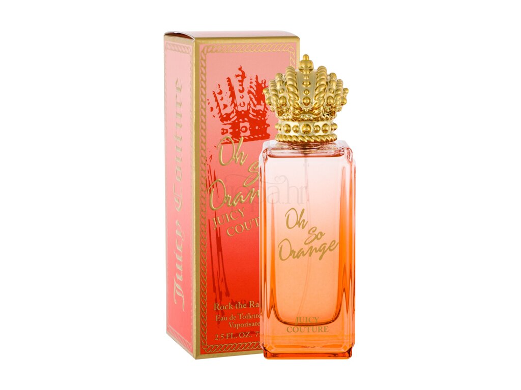 Budite raspoloženi za naranču! Od sjajne kožne jakne do narančaste ogrlice od koralja i ruža do sunčanog citrusnog mirisa kojim odiše toaletna voda Juicy Couture Rock The Rainbow Oh So Orange. Ovaj miris predstavljen je 2019. godine, a privlači i svojom prekrasnom zlatnom krunom koja čini kapu mirisa.