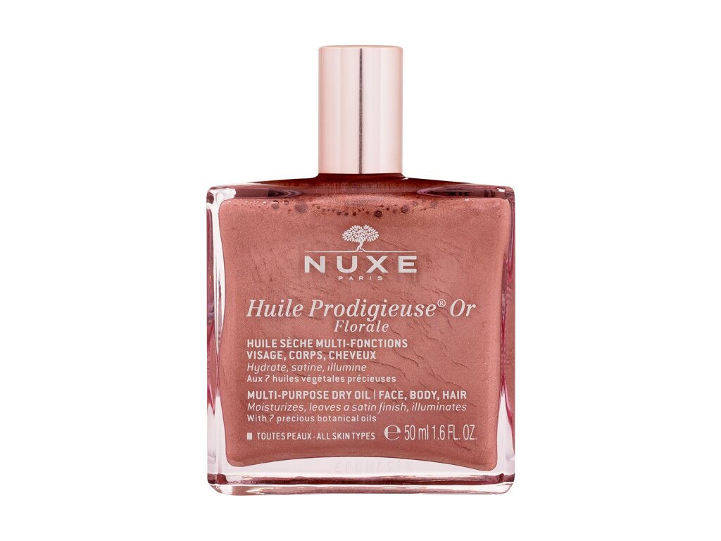 NUXE Huile Prodigieuse Or Florale MultiPurpose Dry Oil je blistavo višenamjensko suho ulje koje vlaži, posvjetljuje i omekšava kožu i kosu sa blistavim završetkom i cvjetnim mirisom.